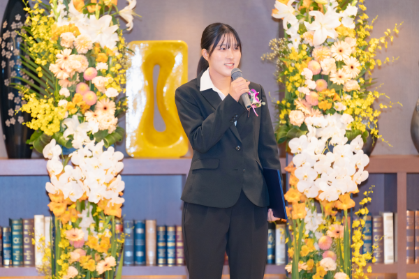 式典では、内定者一人ひとりが「入社を決めた理由」や「将来の抱負」をテーマに、力強い決意表明のスピーチを行いました。